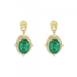 0.36 Ct. T.w. Diamond 2.4 Ct. Emerald Double Halo Earrings In 14Kt Yellow Gold