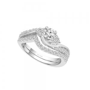 Diani® Solitaire with Curved Bridal Ring Set - 0.76 Ct. T.w. in 14K White Gold