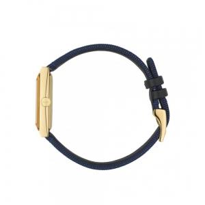 Yellow gold PVD case, cream-red-blue Sylvie web mother of pearl dial with bees indexes, interchangeable cream-red-blue Sylvie web nylon strap