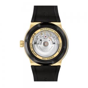 The BOLD Fusion Automatic is defined by a bold, sporty case and a modern edge. A Swiss made automatic movement drives this watch, powered by the motion of your wrist.This 44mm watch features a black exhibition dial with a yellow goldtone centerzone, Swiss Super-LumiNova accents, and an exhibition case back.Automatic watches do not contain batteries. They are charged by the movement of your wrist. If the watch is not worn it will stop running in about 38 hours. To get it started, turn the crown clockwise about 20-30 times until the second-hand starts moving. You will most likely need to reset the time and date.