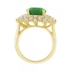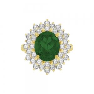 Oval Emerald with Double Halo Diamond Cocktail Ring - 2 Ct. T.w. in 14K Yellow Gold