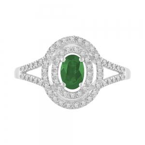 Oval Emerald with Double Halo & Split Shank Diamond Ring - 0.25 Ct. T.w. in 10K White Gold