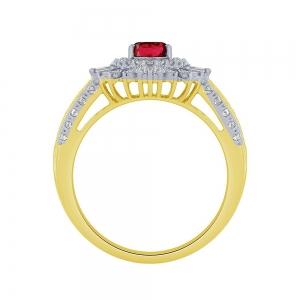 Oval Ruby Double Halo with Baguette Accents Split Shank Ring - 0.50 Ct. T.w. in 14K Yellow Gold
