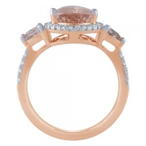 Pear Morganite Halo 3-Stone Diamond Ring - 0.30 Ct. T.w. in 10K Rose Gold